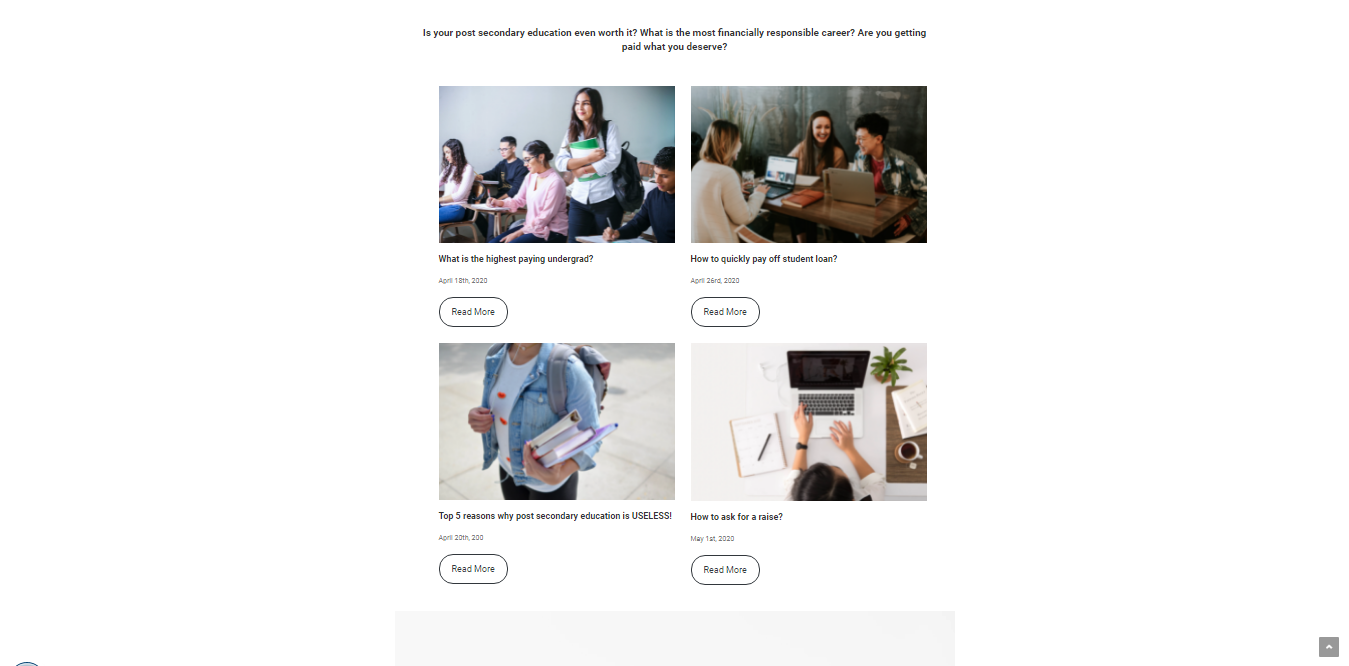 Alumni Mirror is dedicated to guiding individuals in their goal to finding the perfect career for them. We believe that every career should be both financially viable and be in high demand.If your post secondary education doesn’t provide these basic qualities than you should not be pursing it.